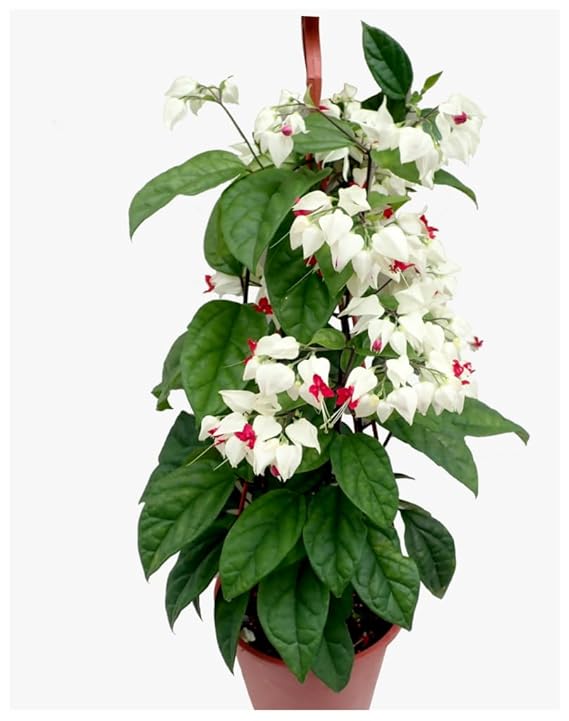 The Bleeding Heart Vine Healthy Flower Plant with Tub is a striking and exotic flowering climber admired for its dramatic red and white heart-shaped blooms and lush green foliage. Known for its unique flowers that resemble a bleeding heart, this plant adds a bold, tropical charm to home gardens, balconies, terraces, pergolas, and boundary walls.