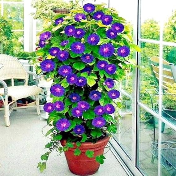 The Morning Glory Flowering Vine Healthy Plant with Tub is a fast-growing and cheerful flowering climber known for its vibrant trumpet-shaped flowers and lush green foliage. This plant is especially admired for its early-morning blooms, which open fresh each day and bring a lively, natural charm to home gardens, balconies, terraces, and boundary walls.