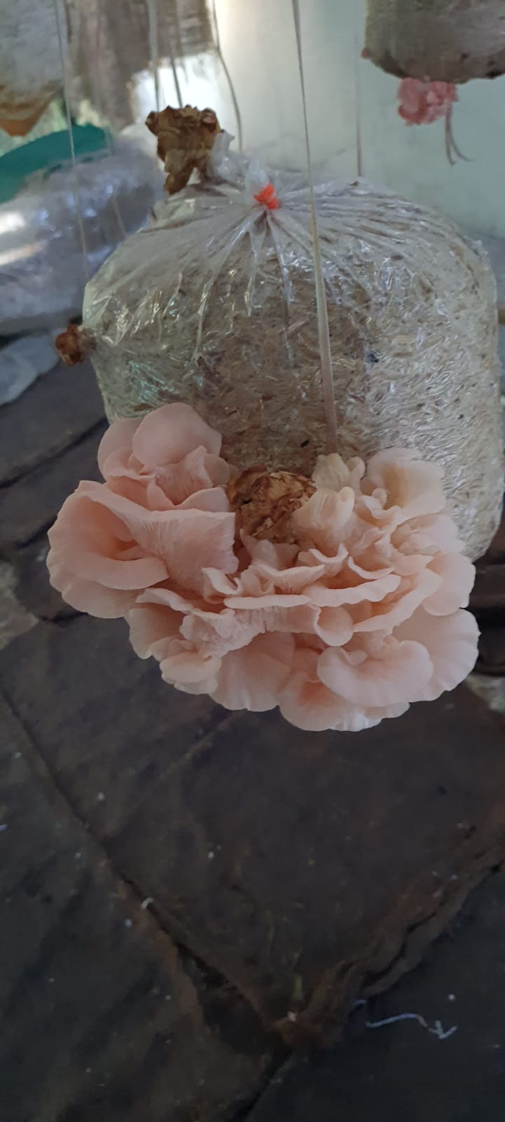 Pink Oysters spawn/Seeds defy the seasonal lull by flourishing on pasteurized wheat straw and cotton hulls, yielding substantial harvests.