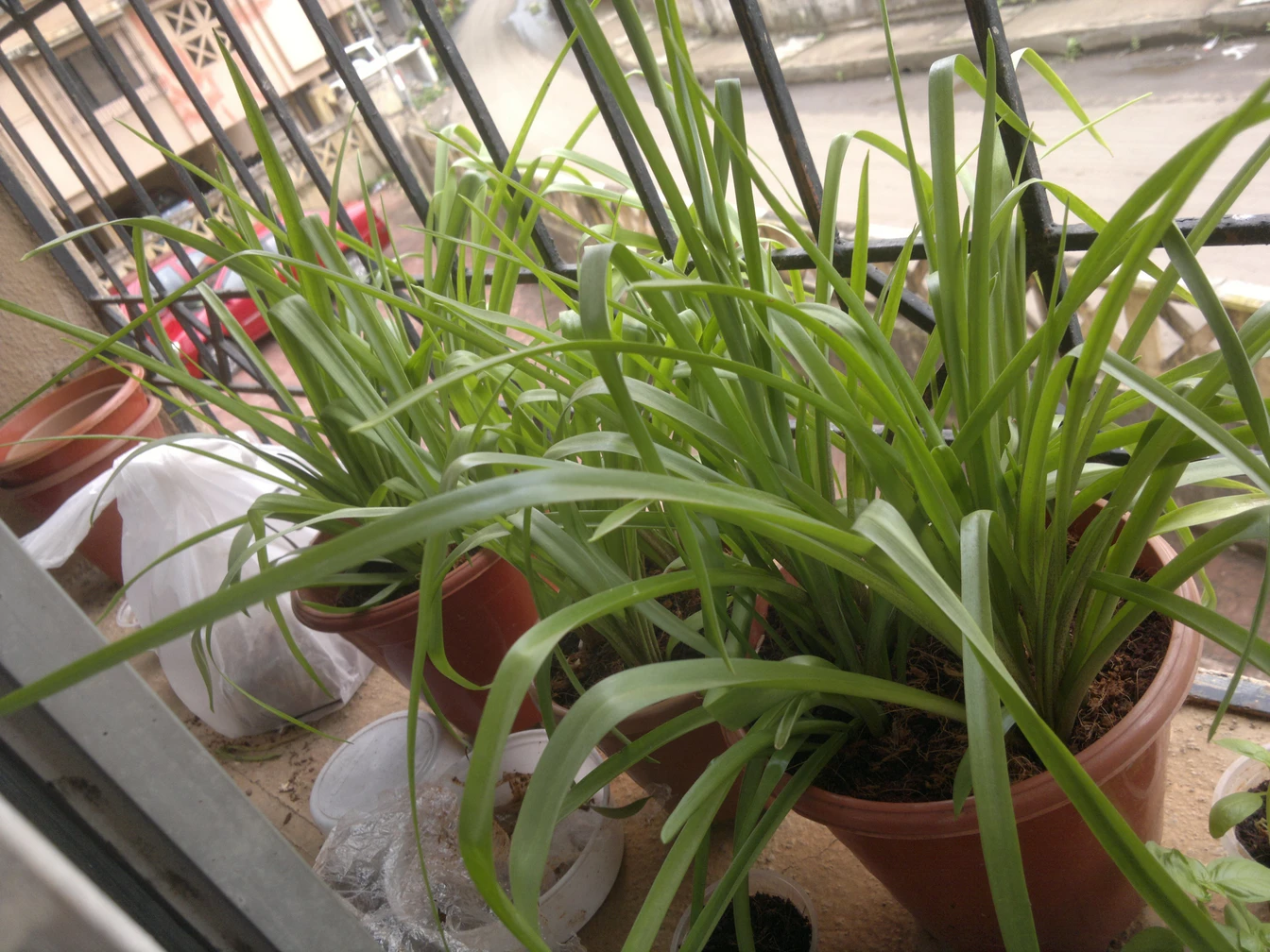 - Narrow, grass-like green leaves